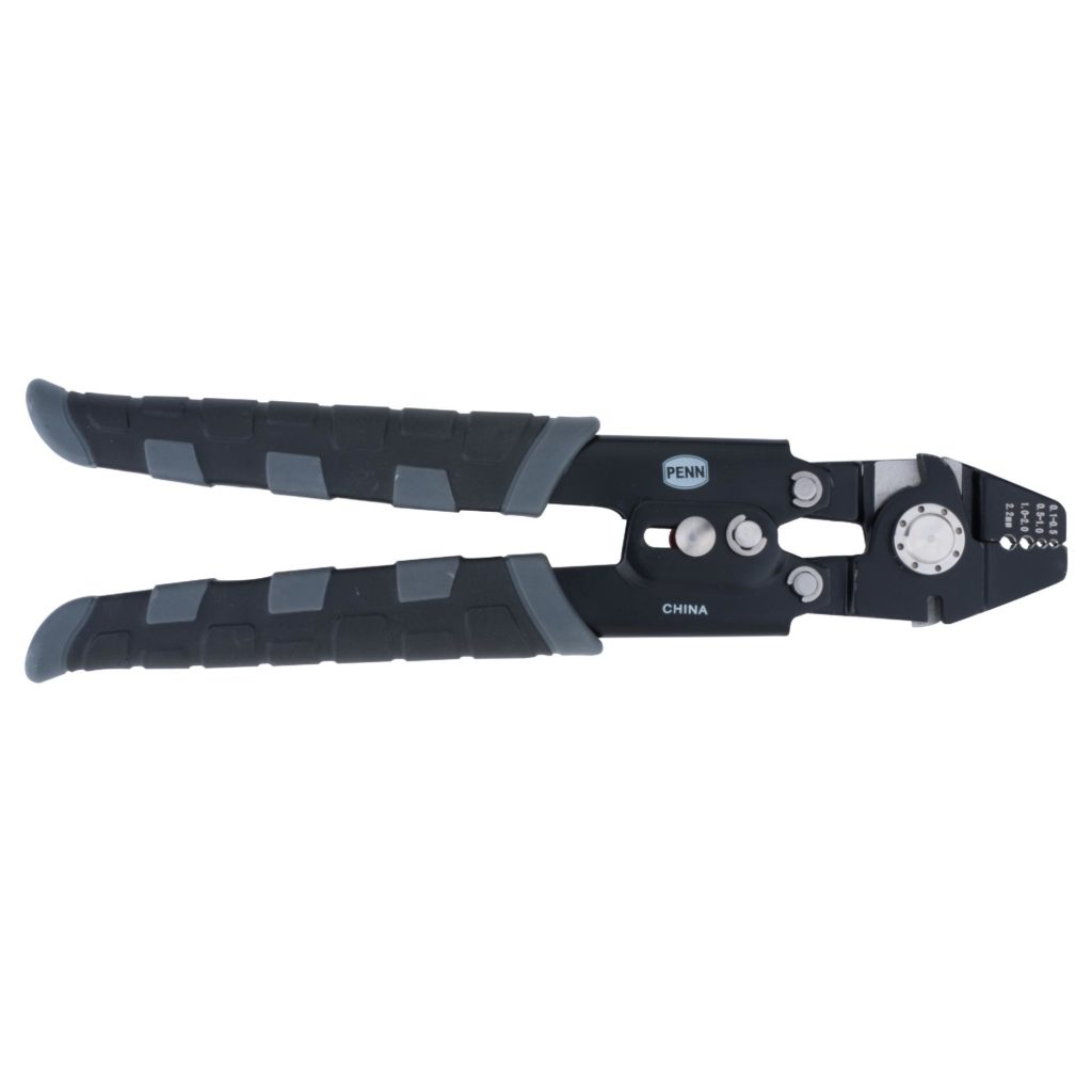 Penn Leader Crimps feature ergonomic handles and are constructed from corrosion resistance stainless steel. Jaws crimp sleeves ranging from 0.1mm-2.2mm. Other features include locking mechanism for easy storage and dual side cutters for heavy mono and wire.