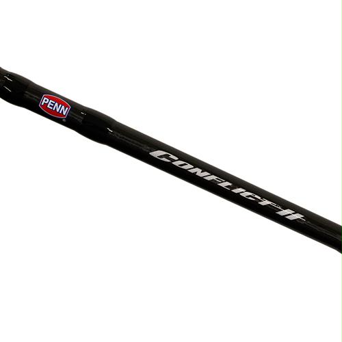The PENN Conflict II combos feature stealthy cosmetics, a Freaky Light design (the lightest spinning reel/rod combo ever), and silky smooth HT-100 drag. The RR30 Rigid Resin body and rotor are extremely lightweight and durable. Internally the Conflict II is powered with the CNC Gear Technology, and high quality stainless steel ball bearings. The rod is made using the 24ton graphite, and features Fuji Aluminum Oxide guides and top grade cork handles.