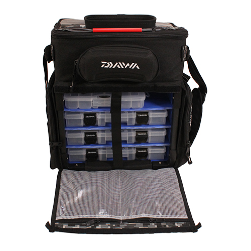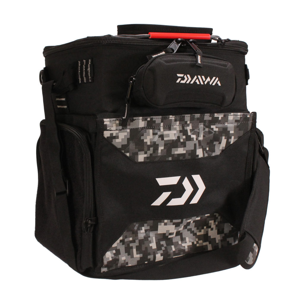 The D-Vec Tactical Front Load Tackle Box is designed with easy front facing access to the three 3600 boxes and the one 3500 box. The frame is constructed from riveted PVC and is rigid and non-collapsible when empty. The zippered compartment inside the front door secures smaller items. A handy Booger Box holds odds and ends. A Leader Wheel and Line Roller is designed for on-the-go spool ups. The Sunglasses Case keeps your valued eyewear protected. A Beefy #10 Delran Zipper is Corrosion Resistant and built to last. A Velcro Attachment Area adds storage options. The Daiwa Tactical Fabric with camo accents is sewn together with Double Reinforced Stitching. When you think about party-boat trips, fishing on a buddy’s boat or on your own boat, the Daiwa D-Vec Tactical Front Load Tackle Box is the one you want to bring to organize all your tackle.