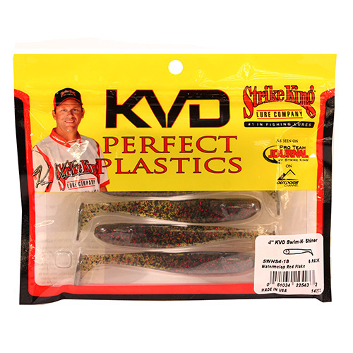 Strike King KVD Swim-N-Shiner – Featuring the exclusive technology known as Coffee Scent which masks the human scent and oils and helps attract the fish to bite. Strike King uses this exclusive technology on their Perfect Plastics line of plastic lures and baits that Kevin VanDam uses and supports. The soft body of these plastics have a lifelike feel that hold the extra salt taste and all of that combined help attract the fish and increases their hold time onto the lure or bait.