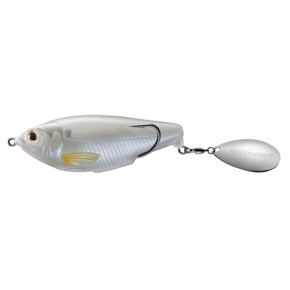 This life-like hollow body bait generates a tremendous splash and noise that is inviting to surface feeding Bass and Northern Pike. With its realistic profile and attention to detail, this bait replicates a juvenile Shad with remarkable accuracy. The custom extra sharp wide gap double hook was designed specifically to maximize hookups. The rear-spinning blade is custom designed to generate powerful splashing, a broad bubble trail and a deep penetrating �blooping� sound that will call fish in from a distance.