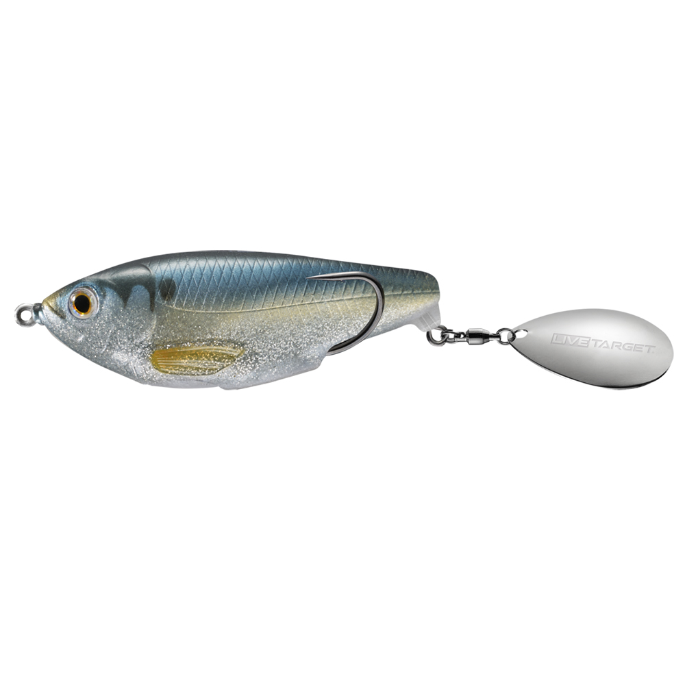 This life-like hollow body bait generates a tremendous splash and noise that is inviting to surface feeding Bass and Northern Pike. With its realistic profile and attention to detail, this bait replicates a juvenile Shad with remarkable accuracy. The custom extra sharp wide gap double hook was designed specifically to maximize hookups. The rear-spinning blade is custom designed to generate powerful splashing, a broad bubble trail and a deep penetrating �blooping� sound that will call fish in from a distance.