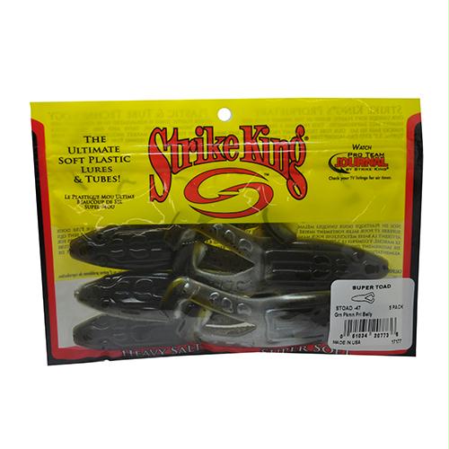 Strike King’s Super Toad offers the perfect profile and unique sound that bass can’t resist. Designed to be fished around shallow cover such as grass, brush and lily pads, the Super Toad will draw vicious topwater strikes! Texas rig it unweighted, on a belly-weighted hook, or put it on the back of a buzzbait for some extreme topwater action!